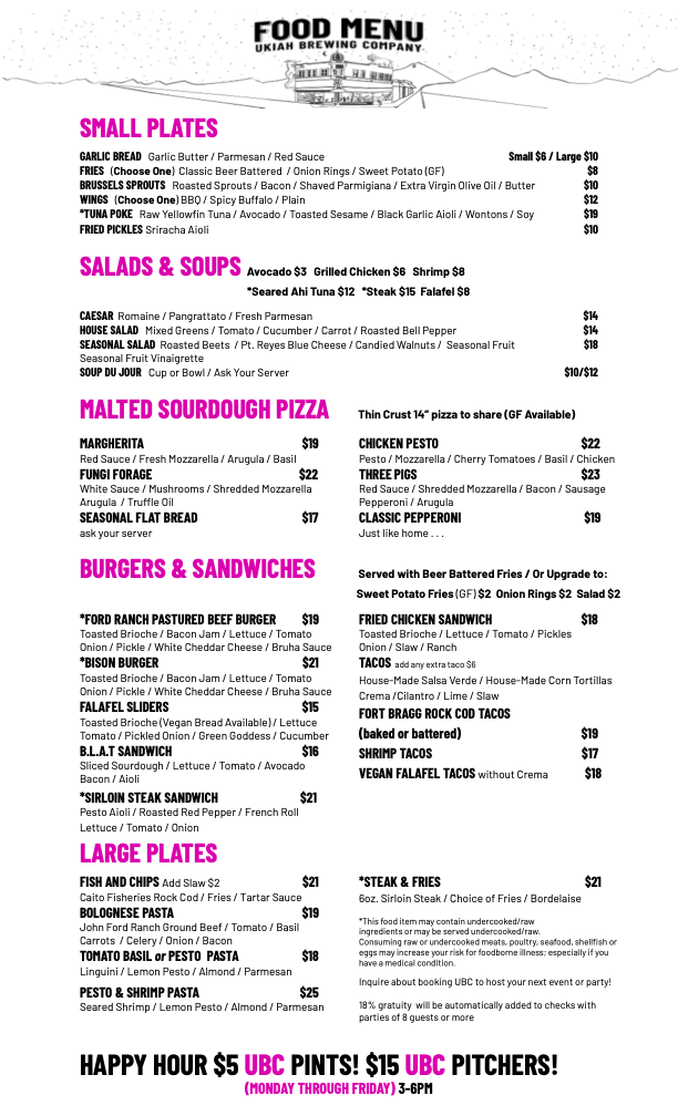 Ready to enjoy a culinary experience that marries fine brewing with hearty food? Ukiah Brewing Company awaits your visit. Don’t miss out on this gem in downtown Ukiah, whether you come for the food, the drinks, or the lively ambiance, you are guaranteed to leave satisfied and wanting more!